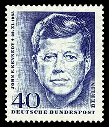 Джон Фицджералд Ке́ннеди (англ. John Fitzgerald Kennedy, известный также как JFK (Джей-Эф-Кей); 29 мая 1917, Бруклайн, Массачусетс, США — 22 ноября 1963, Даллас, Техас, США)[8] — американский политический, государственный и общественный деятель, 35-й президент США (1961—1963). Родился в богатой семье ирландского происхождения[9].