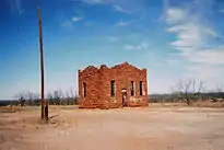 | Полуразрушенное здание 1895 года бывшей окружной тюрьмы в Клэрмонте | Водонапорная башня Джейтона | Заброшенный магазин на улице Клэрмонта |