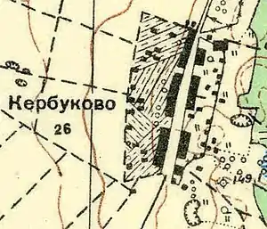 КЕРБУКОВО — деревня владельческая при колодцах, число дворов — 20, число жителей: 39 м. п., 39 ж. п. (1862 год)[13]