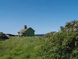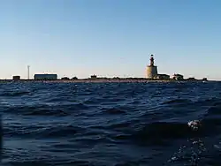 На острове находится маяк, похожий на «графин, заткнутый сверху ... пробкой»:[4] его низ являет собою усечённый каменный конус высотою в 16 м,[3][4] выкрашенный белой краской, а верх — неширокий металлический цилиндр тёмно-красного цвета[3] с маячным фонарём наверху. Прежде маячная «пробка» была деревянной усечённой пирамидой, имеющей в своём основании восьмиугольник.[4] Фокальная плоскость маяка находится на высоте 31 м. Даёт белую вспышку каждые 15 сек.[3] Часть каменного основания разрушена штормом,[3] поэтому для крепости постройка стянута четырьмя металлическими кольцами.