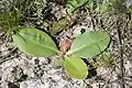 Листья собраны в прикорневую розетку, черешковые, широкоэллиптические или яйцевидные, зеленые или сизо-зеленые.