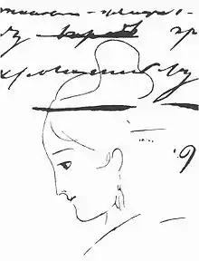 ![]() Предполагаемый портрет Анны Керн. А. Арефов-Багаев. 1840-е гг (по другой атрибуции, здесь изображена Анна Бегичева, дочь И. М. Бегичева) | |