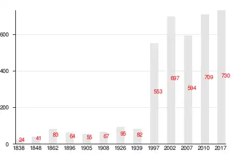 | 1997 | 2002 | 2007[27] | 2010[28] | 2017[29] | ||