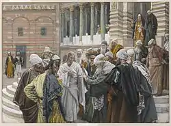 Набирающего популярность молодого проповедника попытались скомпрометировать фарисеи. Как бы испытывая его мудрость, его спросили, нужно ли платить налоги Цезарю? — болезненный вопрос для покорённой римлянами провинции Иудеи. Ответ «да» дискредитировал бы его перед патриотичными евреями, и вдобавок, оказался бы богохульством — ибо евреи считали себя богоизбранной нацией. Ответ «нет» можно было бы расценить как призыв к мятежу и использовать его для обвинения в восстании (за что Иисуса в итоге и осудили).