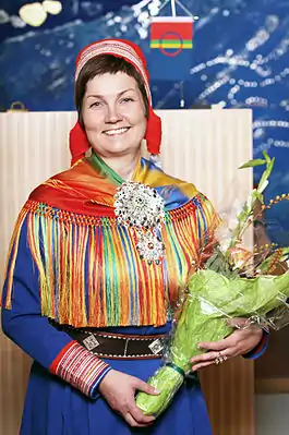 ![]() Айли Кескитало после избрания Президентом Саамского парламента Норвегии. 16 октября 2013 | |