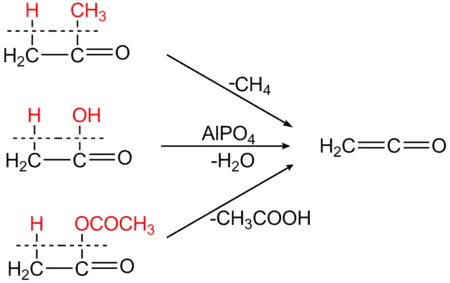 Кетен также может быть синтезирован пиролизом уксусного ангидрида или уксусной кислоты: