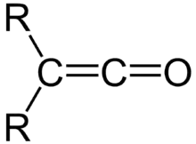 Кетены — соединения общей формулы R1R2C=C=O, в которых карбонильная группа соединена двойной связью с алкилиденовой группой[1]. Содержит кумулированную систему двойных связей C=C и C=O.