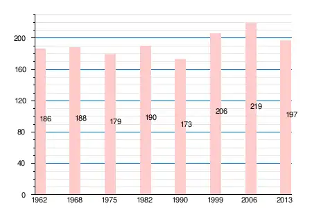 | 186 | 188 | 179 | 190 | 173 | 206 | 219 | 212 | 208 | 203 | 197 |