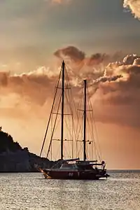 Подобное парусное вооружение и расположение оси руля дает преимущества по управляемости и ходкости в сильный ветер.