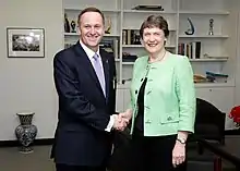 - Орден Австралии степени почётного Компаньона (17 июля 2017) — «за глубокую приверженность развитию двусторонних отношений между Австралией и Новой Зеландией и продвижению наших общих интересов в регионе и на международном уровне»[80]. Знаки отличия вручены 18 июля 2017 года генерал-губернатором Австралии Питером Косгроувом[81]