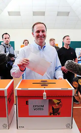 20 сентября 2014 года в Новой Зеландии прошли парламентские выборы. Правящая Национальная партия во главе с Джоном Ки, получила большинство голосов — 48,06 %. Кий остался на своей должности.