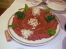 Сырой киббех подают в качестве закуски-мезе на блюде с оливковым маслом, зелёным луком, зелёным острым перцем, листьями мяты и лавашем.