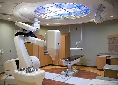 Для изменения позиции пациентов при лечении используется робототехническое ложе с шестью степенями свободы, называемое RoboCouch[16].
