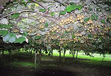 Ки́ви — название плодов культурных сортов растений рода Актини́дия[1][2], принадлежащих к видам Актини́дия кита́йская (лат. Actinidia chinensis) или Актинидия деликатесная (лат. Actinidia deliciosa)[3]. Сами растения представляют собой крупные древовидные лианы родом из Китая[1], поэтому киви иногда называют «китайским крыжовником». В 2017 году Китай произвел 50 % мирового объёма киви[4].