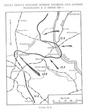 ![]() Схема охвата Красной Армией поляков под Киевом. | |||