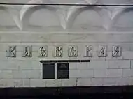 Надпись над платформой Киевская, стилизованная под древнерусскую[3].