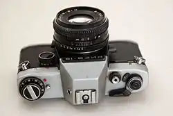 - Корпус — литой из алюминиевого сплава, с открывающейся задней стенкой, скрытый замок. Задняя стенка при необходимости снимается. Автоматически сбрасывающийся счётчик кадров.