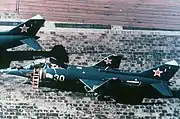 15.12.1975 года состоялась первая полноценная лётная смена[неизвестный термин] на Як-36М с аэродрома Саки, а 06.04.1976г. – первые полеты с палубы ТАКР «Киев».