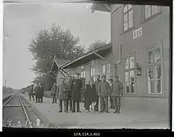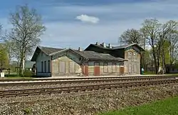 ![]() Вокзал станции Килтси в 1918 году. Видно прежнее название станции Асс ![]() Вокзал станции Килтси. Вид со стороны поселка |