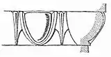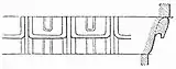 Снизу вверх: дентикулы (зубчики), ионический киматий и карниз с пальметтами, выше — астрагал с «бусами». Дом Флавии на Палатинском холме в Риме