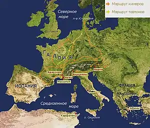 ![]() Карта Кимврской войны. Места основных сражений | |||