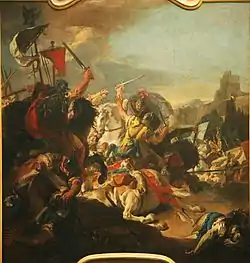 Отряд[17] консульского легата Аврелия Скавра был разгромлен кимврами, сам он был сброшен варварами в бою с коня и захвачен в плен. На племенном совете кимвры предложили ему стать их военачальником. Но когда в ответ Скавр стал отговаривать их от вторжения в Италию, говоря о непобедимости римлян, молодой вождь кимвров Бойориг (лат. Boiorige) убил легата.