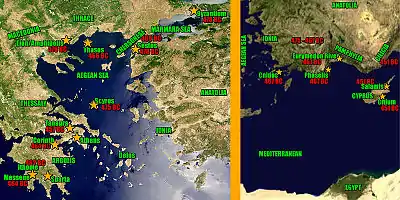 После окончательного изгнания персов с территории Греции Кимон был назначен афинским стратегом в составе союзного флота под общим руководством спартанского царя Павсания[28][29][30]. Во время экспедиции греки захватили у персов Византий. Несмотря на военные успехи, спартанский царь Павсаний из-за своей грубости и недостойного поведения лишился поддержки рядовых греков[29].