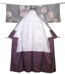 - Передняя нательная часть (яп. 前身頃 маэмигоро) — передняя часть кимоно без рукавов, покрывает грудь. Делится на левую и правую части;