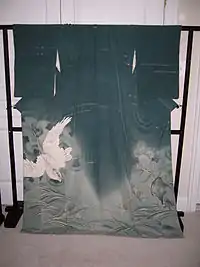 - Томэсодэ (яп. 黒留袖): самое официальное кимоно замужней женщины с рисунком только на подоле. Имеет две разновидности: