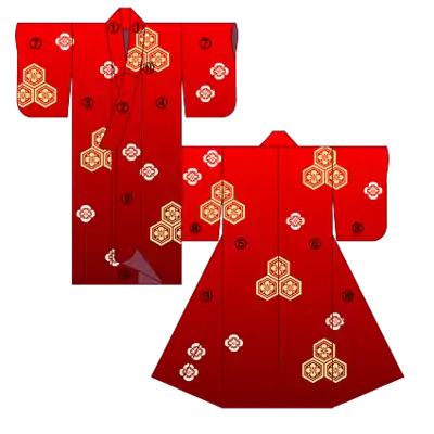 Наиболее формальны чёрные кимоно с пятью гербами на плечах, груди и спине. Немного менее формально кимоно с тремя гербами, под него часто надевают белое нижнее кимоно.