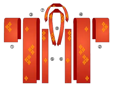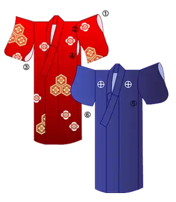 - Рукавный отрез (яп. 袖刳り содэкури, отверстие в нательной части кимоно, к которому пришивается рукав);
