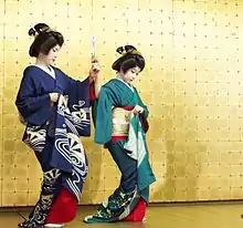 - Хикидзури (яп. 引き摺り) и сусохики (яп. 裾引き). Сусохики обычно носят гейши или исполнители традиционных японских танцев. Сусохики длиннее обычного кимоно, за счёт длинного шлейфа. Сусохики буквально означает «держать подол». Обычное женское кимоно имеет длину 1,5—1,6 метра, а сусохики может быть длиной до 2 метров. Гейши и ученицы гейш поднимают подол кимоно также и для того, чтобы показать разноцветный нагадзюбан (см. ниже)[5].