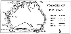 Кингу было поручено исследовать те части побережья Австралии, что не были изучены Мэтью Флиндерсом, и с декабря 1817 по апрель 1822 года он совершил четыре путешествия. Среди 19 человек его команды были Аллан Каннингем, Джон Септимус Ро и абориген Бангэри. Первые три экспедиции были совершены на 76-тонном куттере «Мермэйд», однако в 1820 году он затонул. Адмиралтейство поручило Кингу проверить, не имеется ли реки, «по которой можно было бы попытаться плавать внутри этого гигантского континента». Министерство по делам колоний дало инструкции по сбору информации, касающейся топографии, фауны, растительности, полезных ископаемых, климата, а также аборигенов и перспектив торговли с ними.