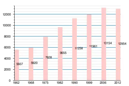 | 1962 | 1968 | 1975 | 1982 | 1990 | 1999 | 2006 | 2011 | 2012 |