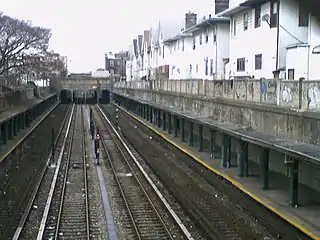 Станция наземная, расположена на четырёхпутной линии и представлена двумя боковыми платформами, обслуживающими только внешние (локальные) пути. Два центральных экспресс-пути не используются для маршрутного движения поездов, и за всю историю подземки использовались только в 1967 — 1968 годах час пиковым суперэкспрессом NX. Платформы соединены надземным пешеходным переходом. Платформы на всем протяжении оборудованы навесом. Стены окрашены в бежевый, а колонны в синий цвет.