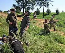 Можно отметить спорный фильм «Оккупация. Мистерии» (Андрей Кудиненко, 2004), представленный на МКФ в 2004 году и 40-м фестивале в Карловых Варах[18]. Взгляд режиссёра на события в западной Белоруссии времён войны отличается от сложившейся культурной традиции героизации партизанской борьбы народа с оккупантами. Пересмотр истории заранее исключает положительный приём фильма большинством зрителей стран бывшего СССР. Режиссёр так описывает свою позицию: «Тема оккупации для Белоруссии — основная тема её существования, потому что наша страна всегда была под оккупацией — польская оккупация, российская, немецкая, французская… Все белорусы — партизаны, и тема партизан и войны — это святая для Белоруссии тема». Белоруссия отозвала у картины прокатное удостоверение, а обозреватель «Российской газеты» высказался, что «фотокадры из фильма выглядят как типичная развесистая клюква с опереточными партизанами и жаркими постельными сценами»[19].