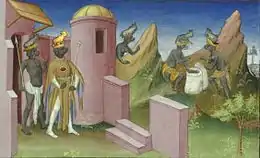 Гесиод упоминает «песиголовцев надменных» в числе потомства Геи-Земли, в одном ряду с массагетами и пигмеями[2].