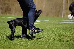 В этой дисциплине требуется плотное движение собаки у ноги спортсмена в любом направлении.