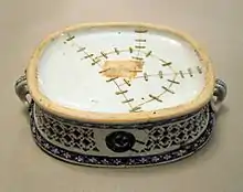 Ремонт с помощью металлических скреп — популярная техника в ремонте керамических изделий[12]. По краям трещины сверлятся небольшие отверстия, в которых закрепляются загнутые с обратной стороны скрепы. Эта техника использовалась в России, Китае, Англии и других странах[13].