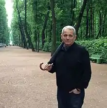 ![]() Б. Г. Кипнис в Михайловском саду на лекции-прогулке. | |