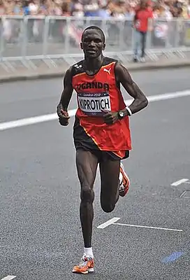 ![]() Стивен Кипротич на трассе олимпийского марафона 2012 года | ||||||||||||||