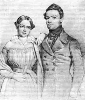 - И. В. Киреевский с женой Наталией Петровной. Литография Г. Митрейтера. 1830-е годы (недоступная ссылка)