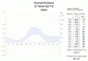 | Средняя температура, °C | −26,6 | −22,3 | −12,7 | −1,4 | 7,8 | 15,3 | 18,3 | 15,1 | 6,7 | −2,1 | −15,5 | −24,5 | −3,5 |