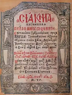 ![]() Перло многоценное. Чернигов. 1646. Титульный лист. | |