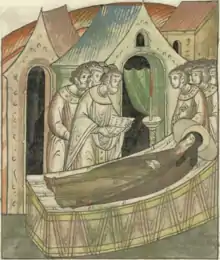 ![]() Митрополит Кирилл II венчает князя Андрея Ярославича с Анастасией. Миниатюра из Лицевого летописного свода (Российская национальная библиотека. F.IV.233. Л. 995 об.) | ||