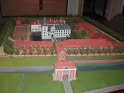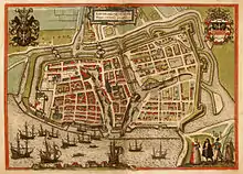 | Эмден, столица Восточной Фризии, в 1575 году | Макет замка Кирксена в Аурихе | Замок Ульриха I в Хаге |