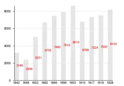 Изменение численности Колтушского прихода с 1842 по 1928 год[4][5]: