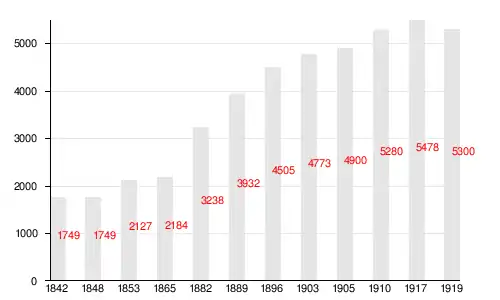 Изменение численности прихожан объединённого прихода Марккова-Ярвисаари с 1842 по 1919 год[6]:
