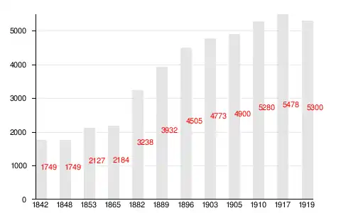 Изменение численности прихожан объединённого прихода Марккова-Ярвисаари с 1842 по 1919 год[4]: