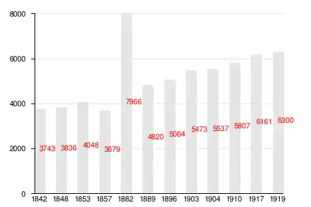 Изменение численности населения прихода Туутари с 1842 по 1919 год[9][10][11]: